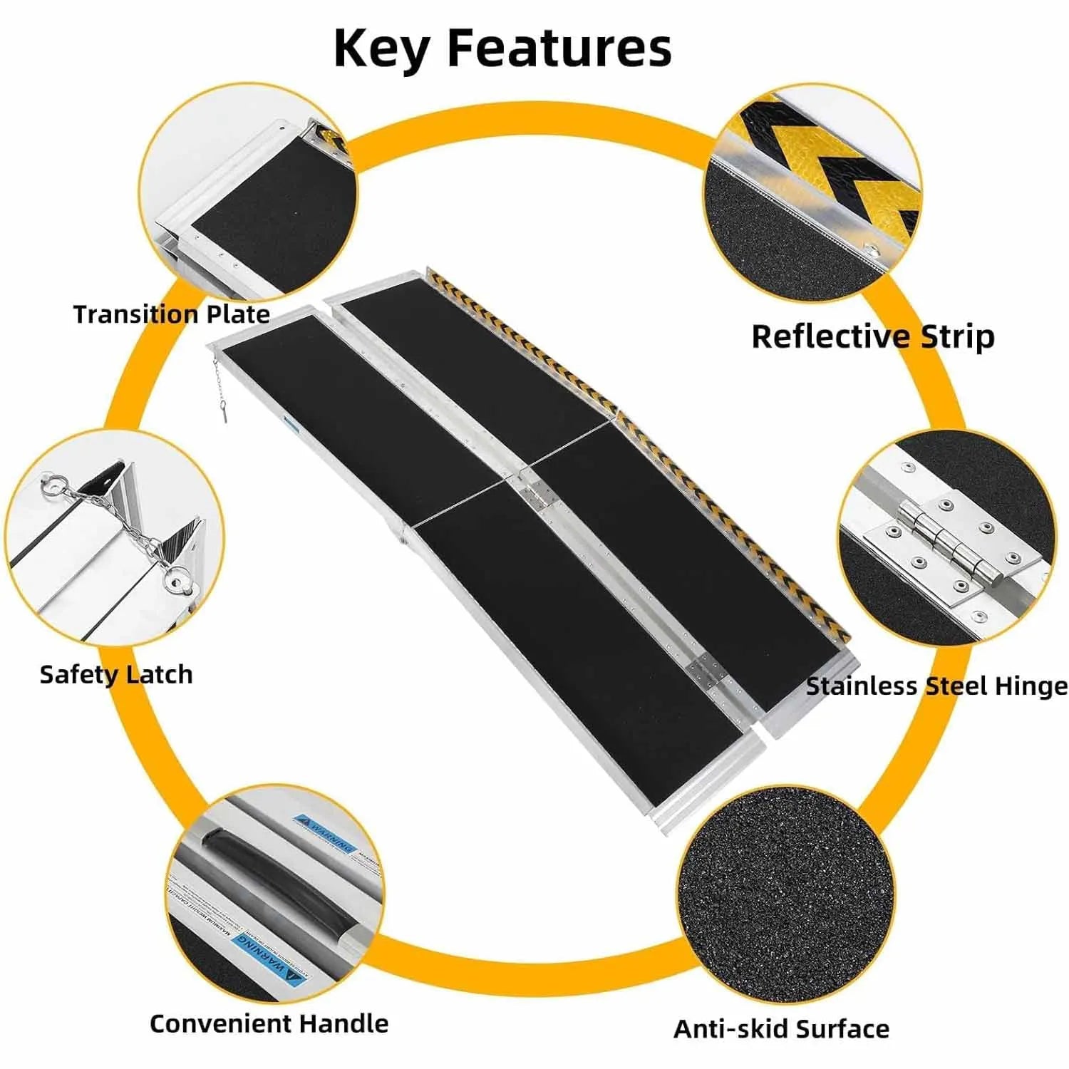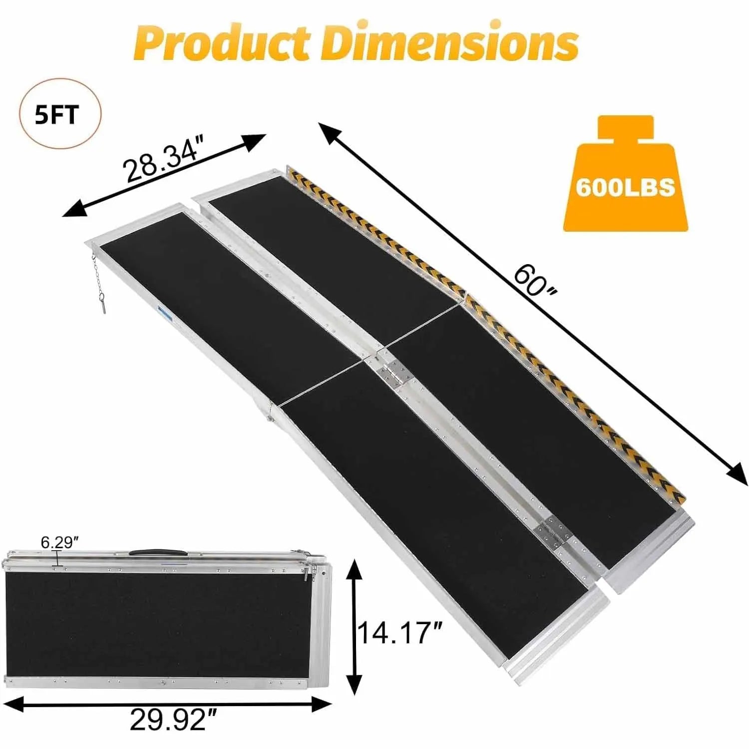 - Premium aluminum construction keeps the ramp lightweight yet sturdy, supporting up to 600 lbs for confident navigation of stairs, curbs, and thresholds.