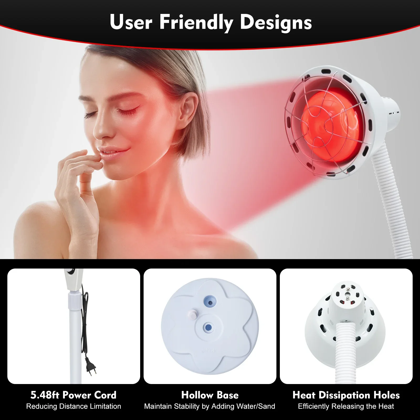 High Safety—— This infrared light will not generate high heat locally, so it will not cause skin burns. The stainless steel anti-scald mesh cover and double-layer anti-scald lampshade can prevent you from accidentally coming into direct contact with high-temperature lamps.