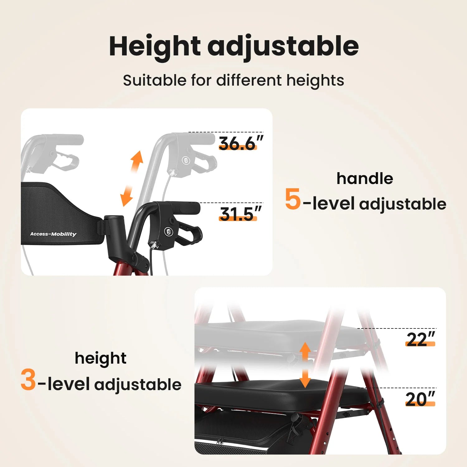 MaiDeSiTe Rollator Walker for Seniors Foldable Aluminum Seat Wheels