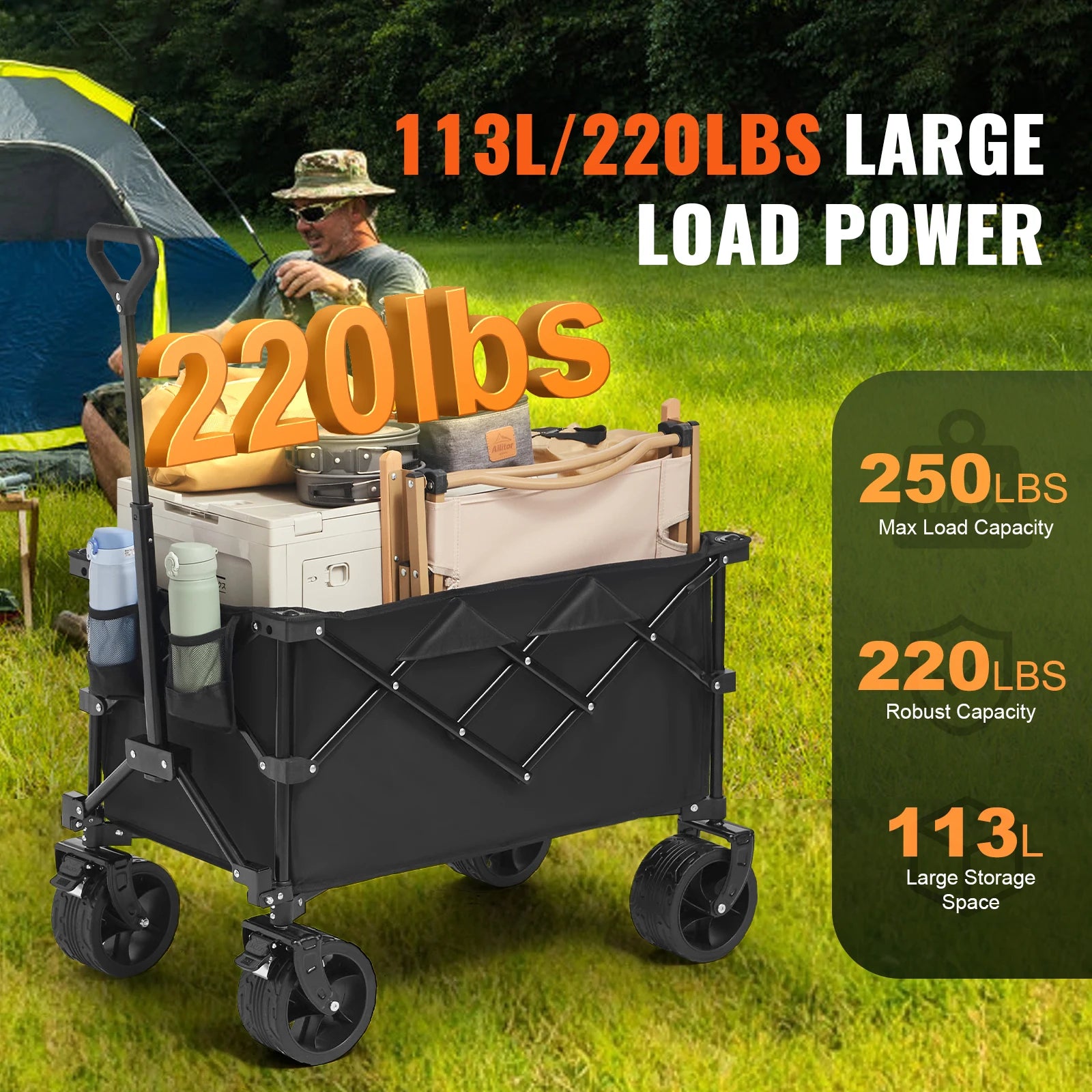 SucceBuy Collapsible Folding Wagon All Terrain Beach Cart is your go-to companion for easy transportation on sand, gravel, and beyond.